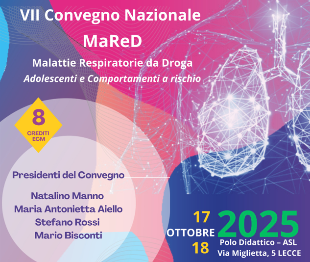 La Consulta di Pneumologia è lieta di segnalare il VII Convegno Nazionale MaReD – Malattie Respiratorie da Droga, un importante appuntamento dedicato all’approfondimento delle complicanze respiratorie correlate all’uso di sostanze stupefacenti e ai comportamenti a rischio in età adolescenziale.